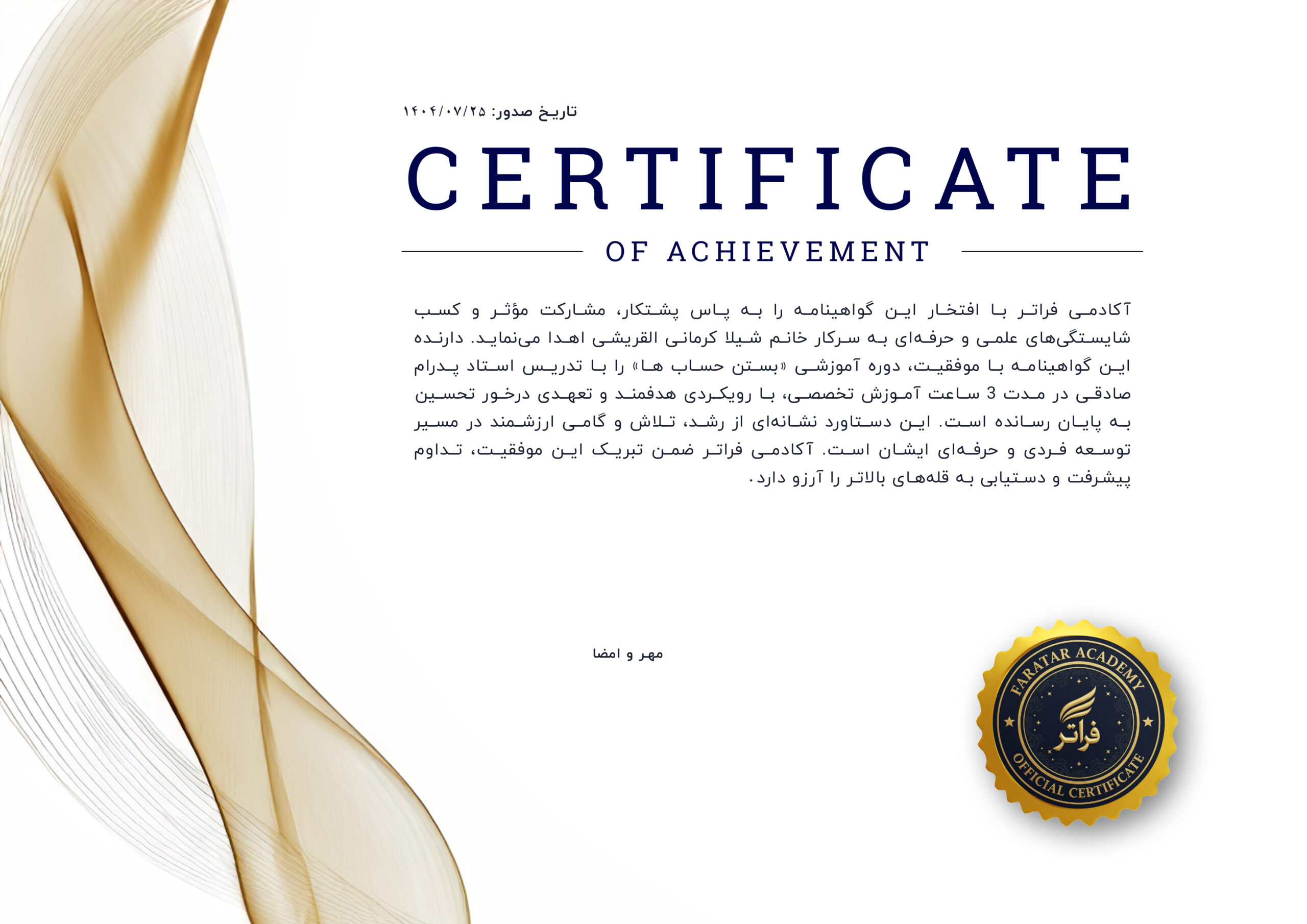 - گواهینامه حضور در دوره با مهر فنی و حرفه ای